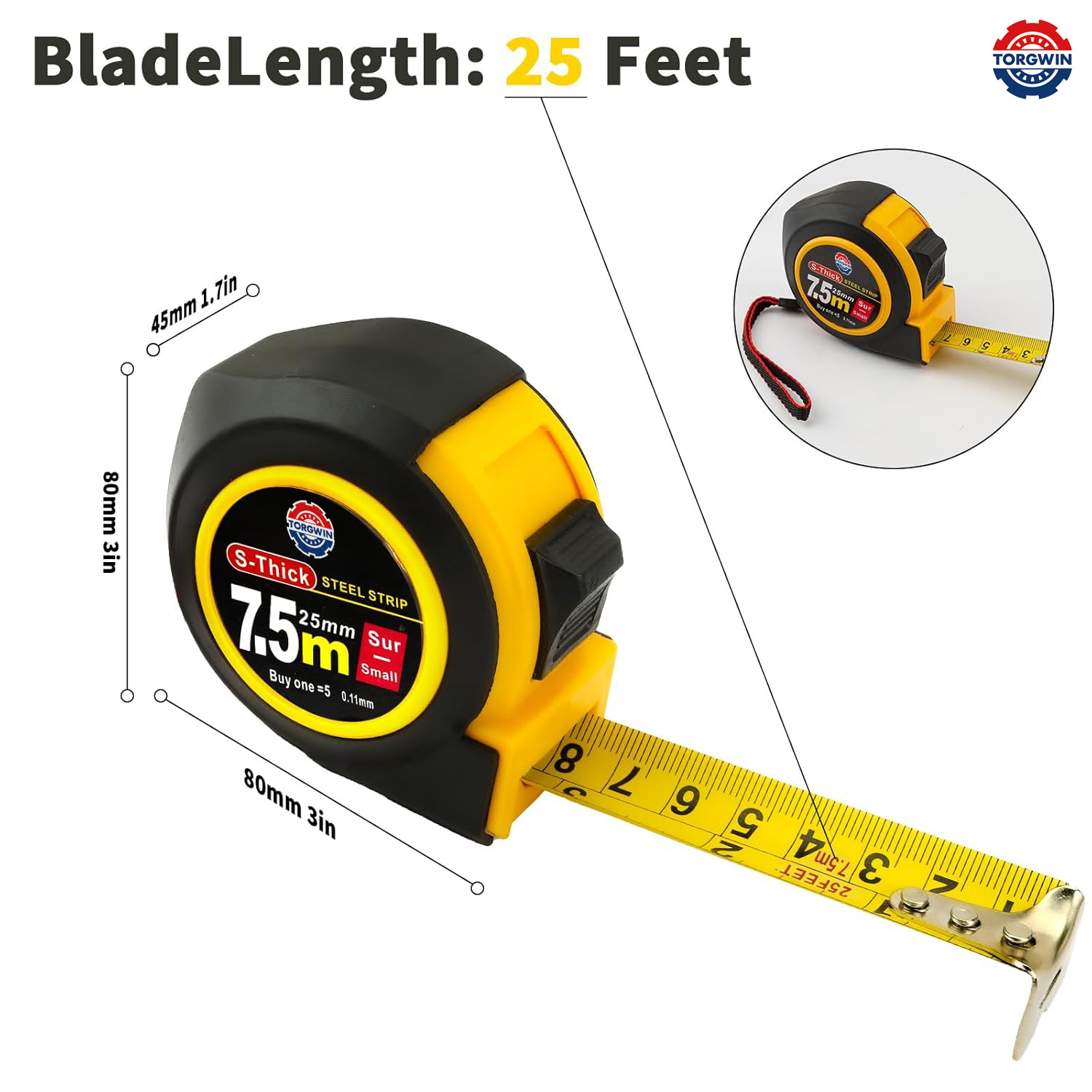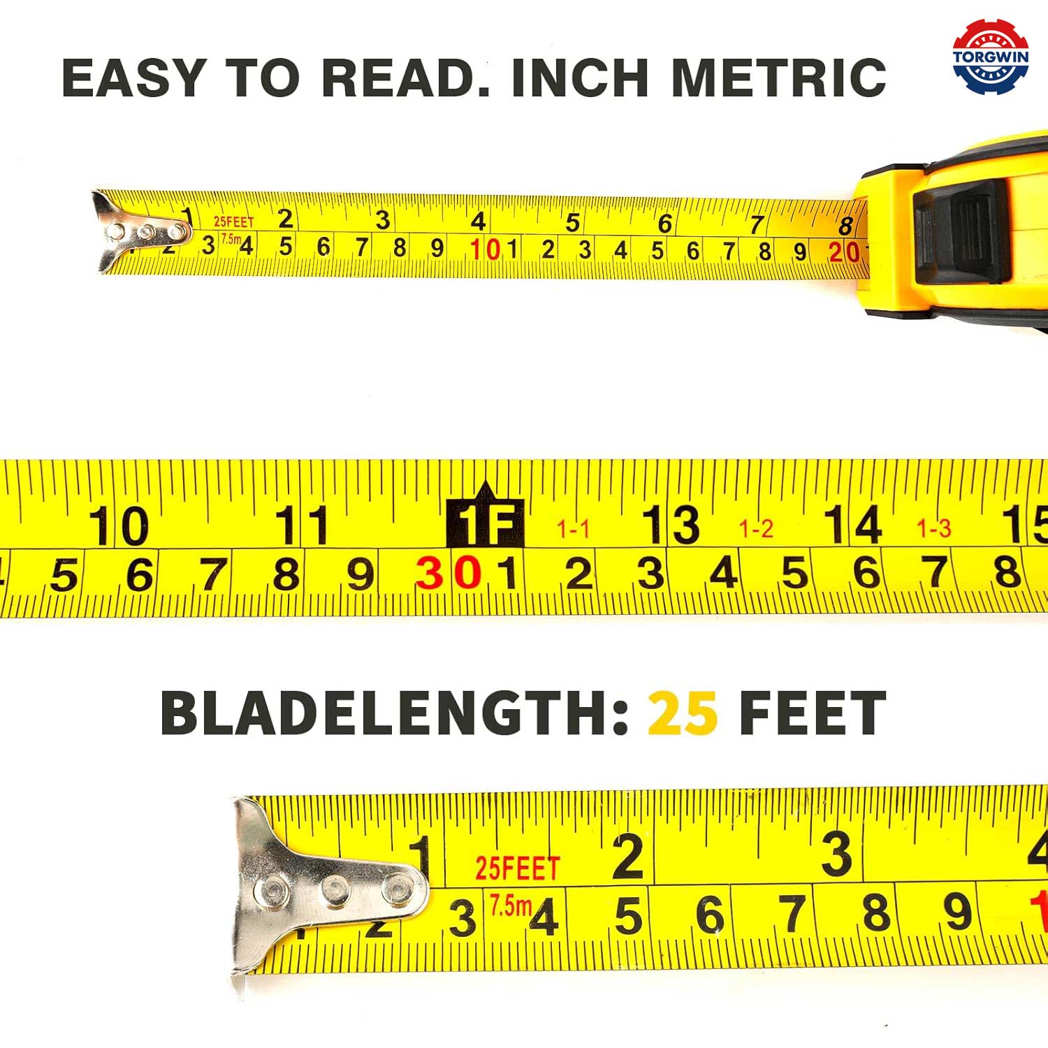 ইঞ্চি এবং মেট্রিক উভয় ইউনিটগুলিতে পরিষ্কার, অত্যন্ত দৃশ্যমান চিহ্নগুলির বৈশিষ্ট্যযুক্ত, আমাদের টেপ পরিমাপ দ্রুত এবং নির্ভুল পাঠগুলি নিশ্চিত করে।